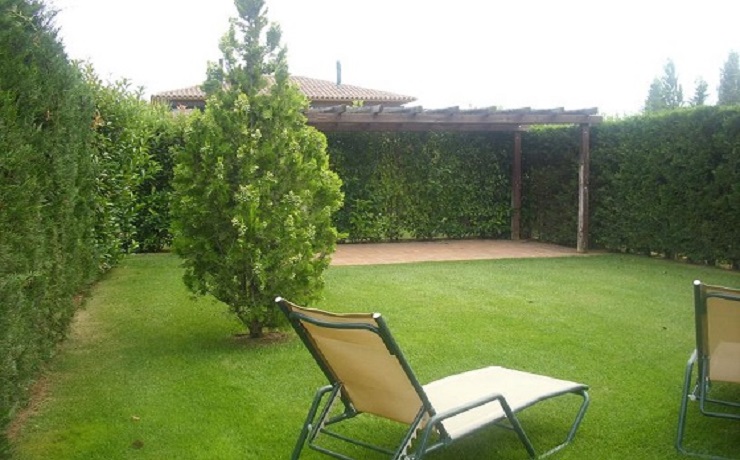 They all can accommodate up to 8 people. They have four bedrooms (an is Suite) , two bathrooms (one of them with bath tub), a washing room with a washing machine, a spacious lounge-dining room with exit to the terrace and a fully-equipped kitchen with kitchen utensils, a combi refrigerator, a microwave-oven, oven, dishwasher and other domestic appliances. Moreover, they all have satellite TV, central heating, a private garden (250m2) and free access to the communal garden and communal swimming pool (18 x 9 m ).